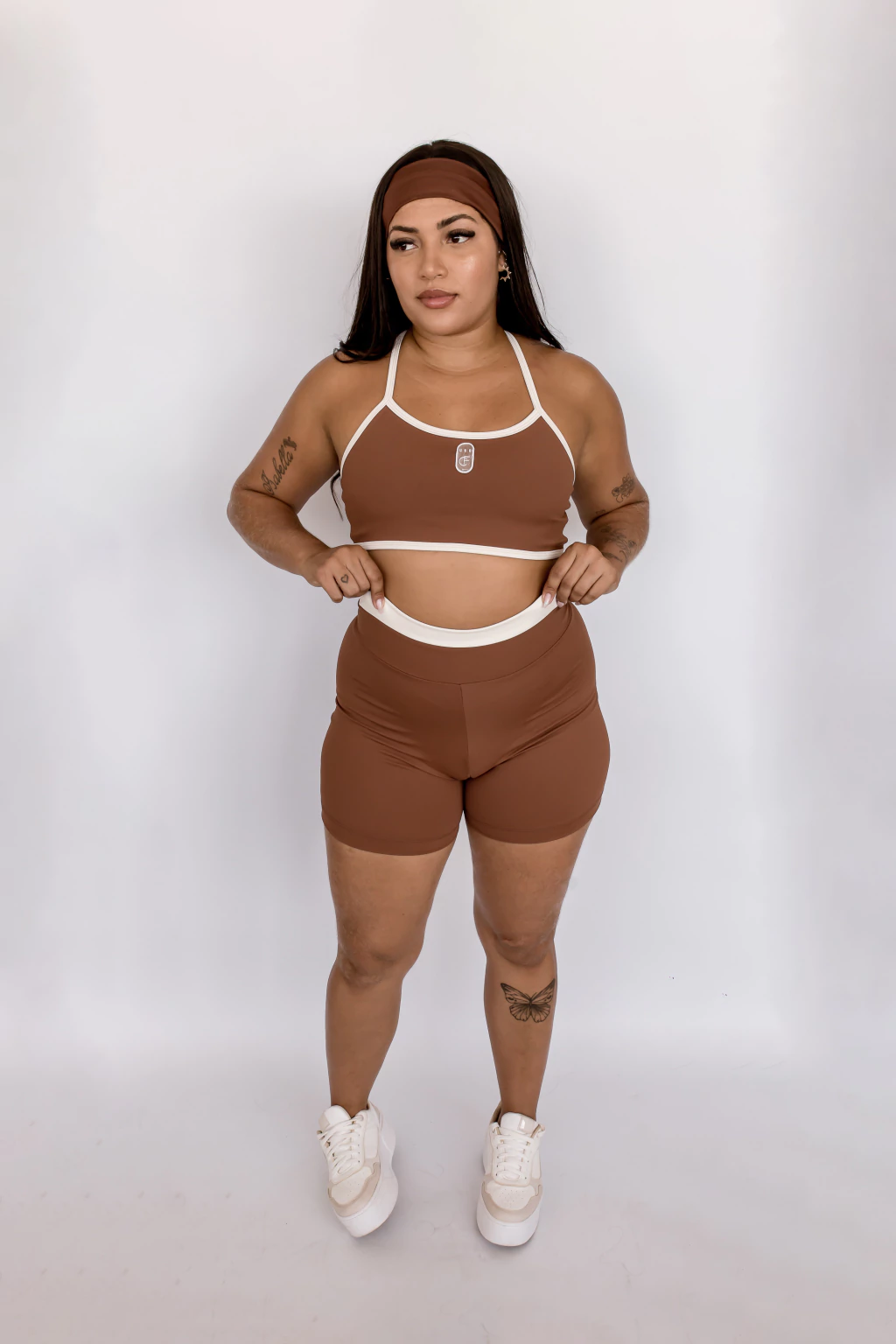 Short Cintura Alta Modeladora: Com cós estruturado, modela a cintura e realça o shape sem marcar, proporcionando firmeza e liberdade nos treinos.